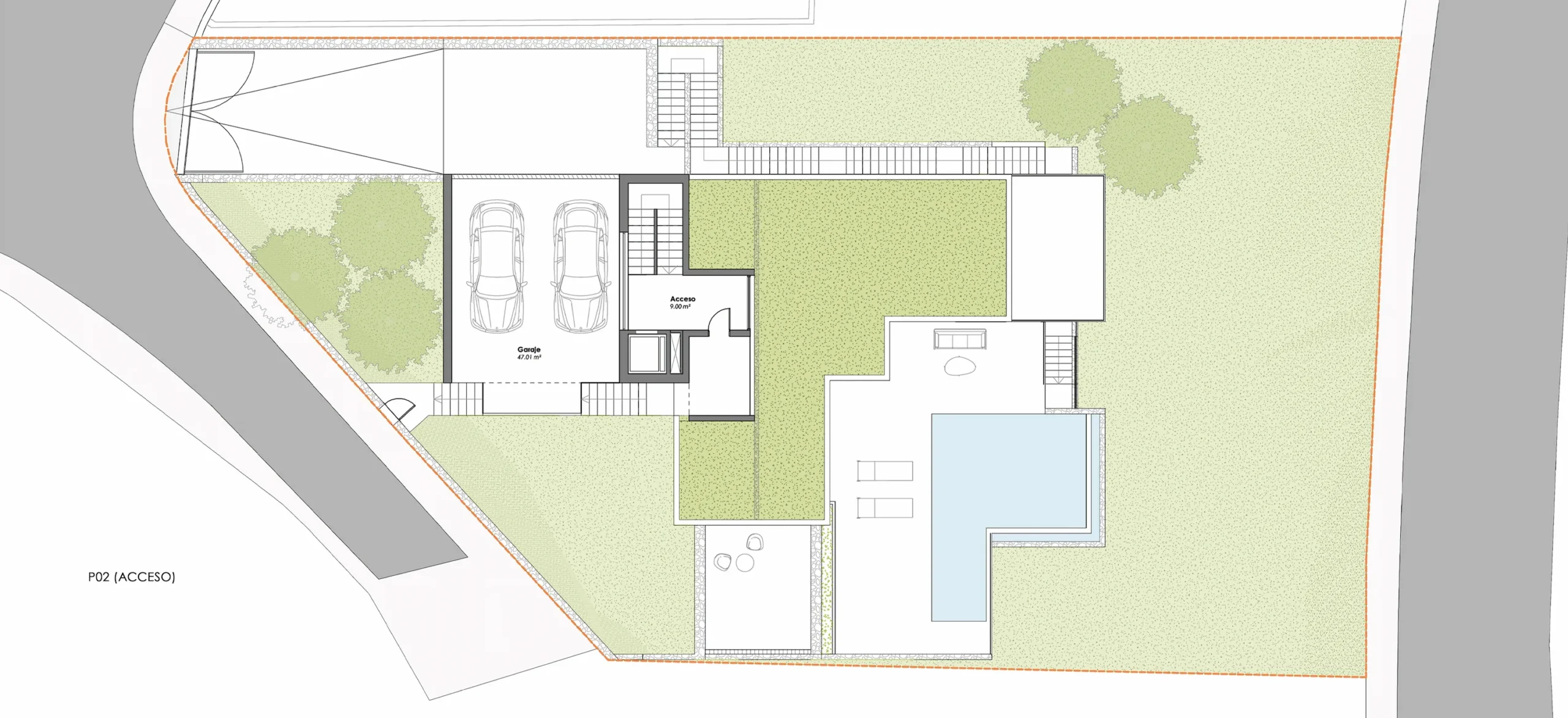 Primeras plantas: organización de usos, circulaciones y relación interior–exterior.
