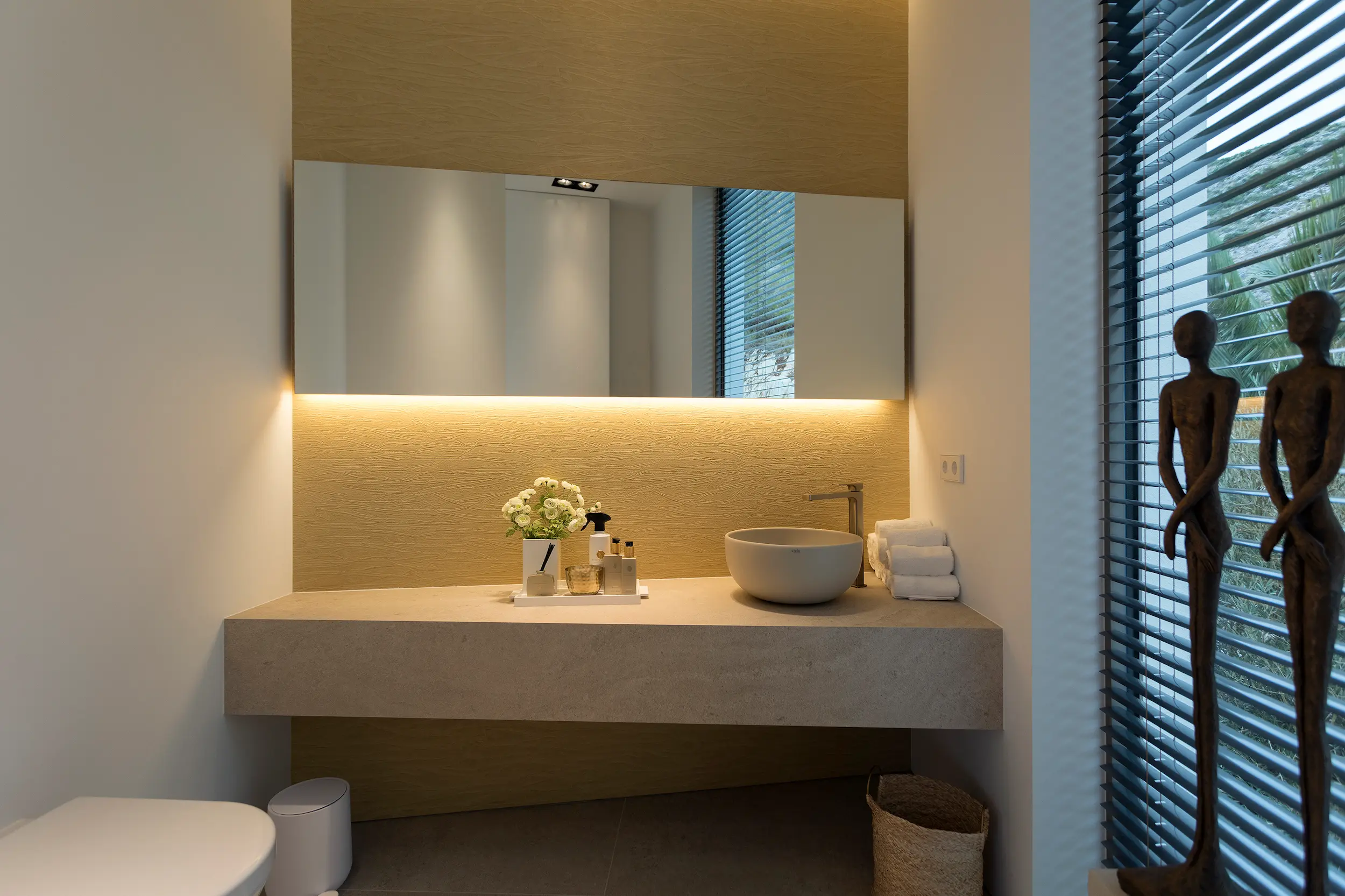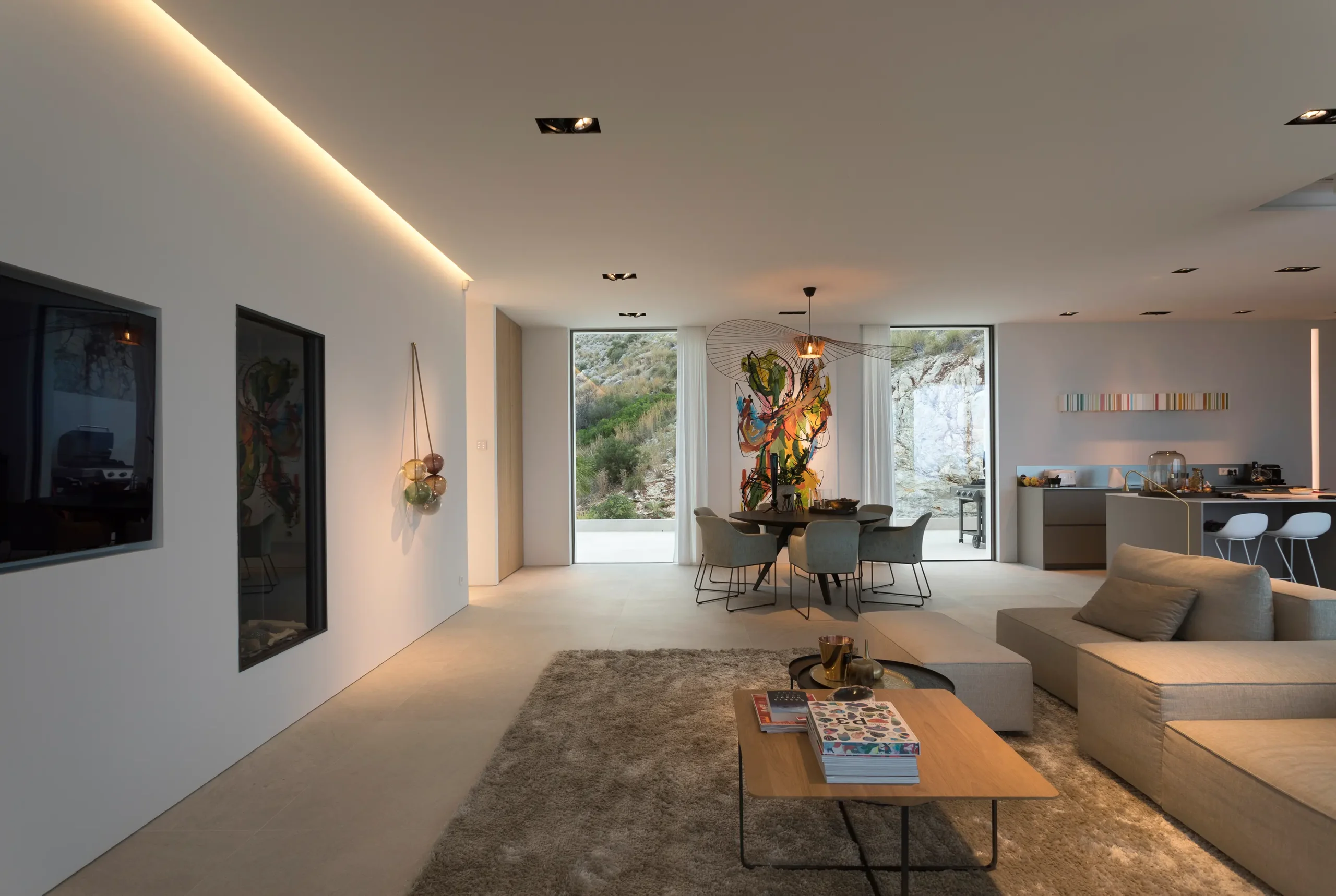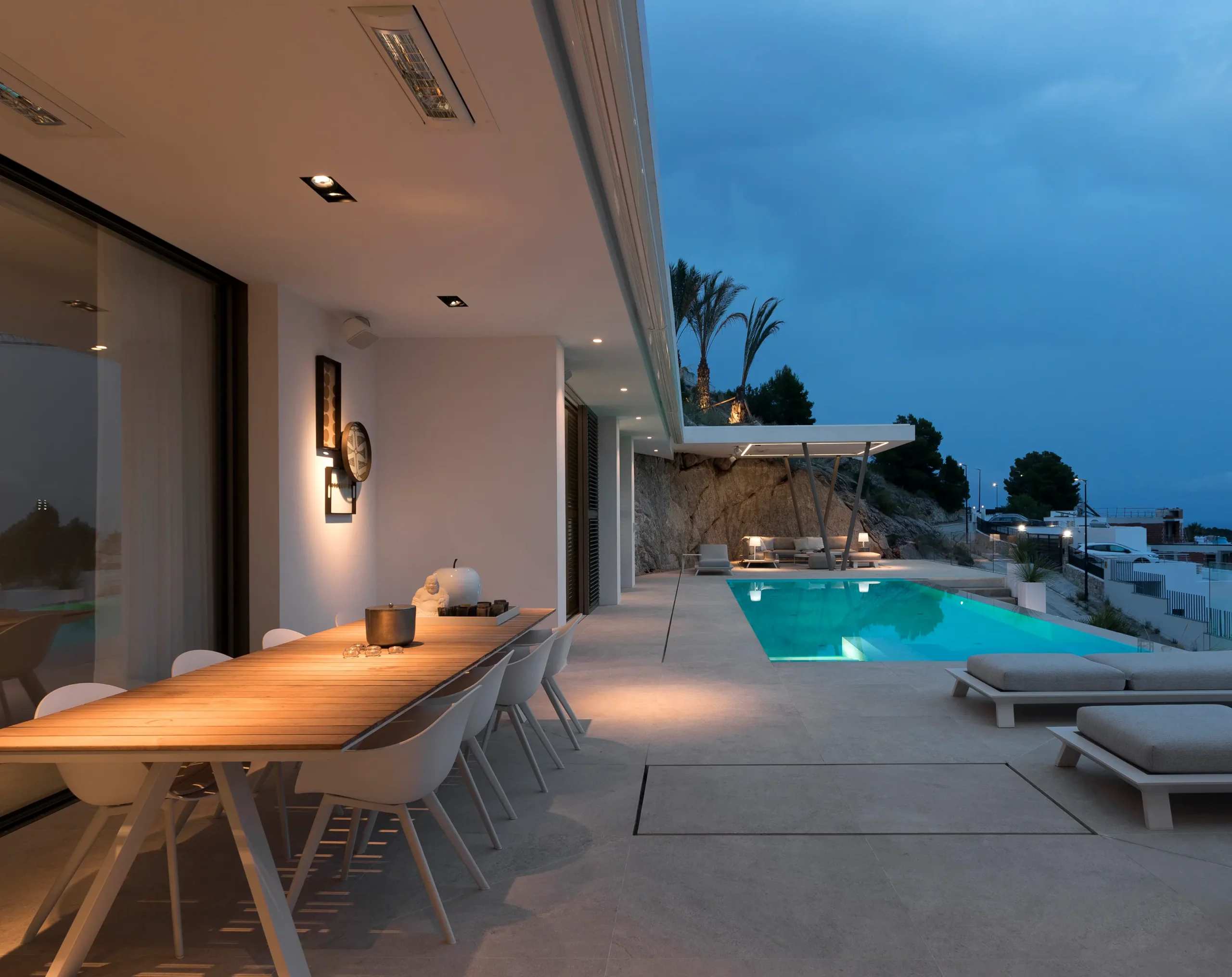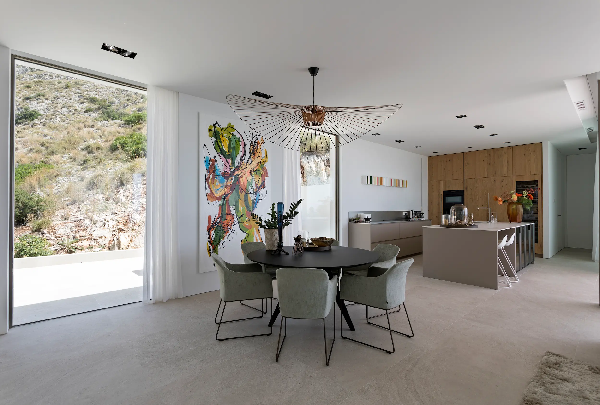 En el exterior, amplias terrazas y una piscina infinita invitan a relajarse, mientras la brisa marina acaricia suavemente la ladera. Esta casa no es solo un lugar para vivir; es una experiencia que conecta con la esencia mediterránea y eleva el concepto de hogar a un nivel completamente nuevo.